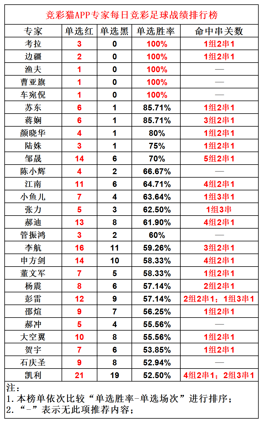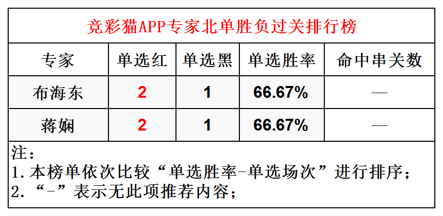 竞彩猫“Brothers”专区幸运星方面,“CR7”入选幸运星,推荐黑单。