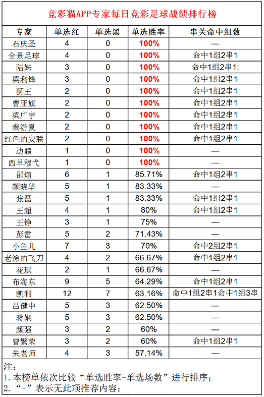 【竞彩猫APP足球专家成绩】