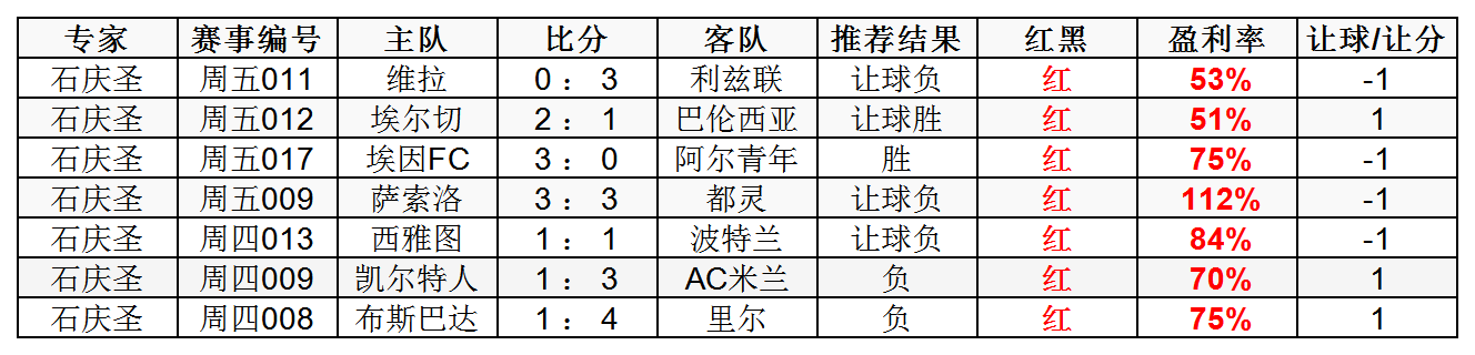 石庆圣竞足7连红;