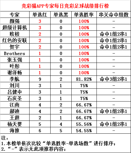 【竞彩猫APP足球专家成绩】