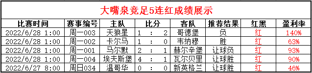 昨天是6月27日星期一,竞彩官方一共开售4场竞足赛事和2场竞篮赛事,竞彩猫多名专家均取得不错的成绩。
