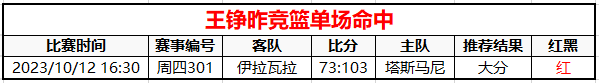 昨日竞篮之星授予专家王铮,王铮昨竞篮单场命中澳篮联伊拉瓦拉老鹰73-103塔斯马尼蚂蚁的大分,状态不俗!今日的竞篮赛事,王铮的方案值得跟进!