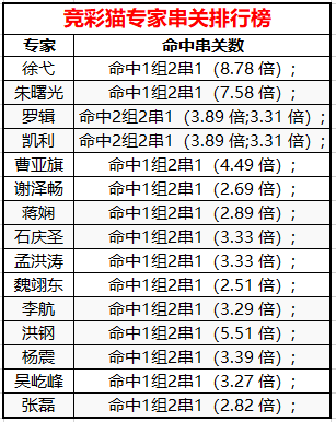 昨日多位专家命中串关,其中徐弋命中一组8.78倍串关,朱曙光命中一组7.58倍串关,罗辑和凯利分别命中2组串关,此外还有众多专家命中串关。今日串关推荐,以上专家的方案值得参考!