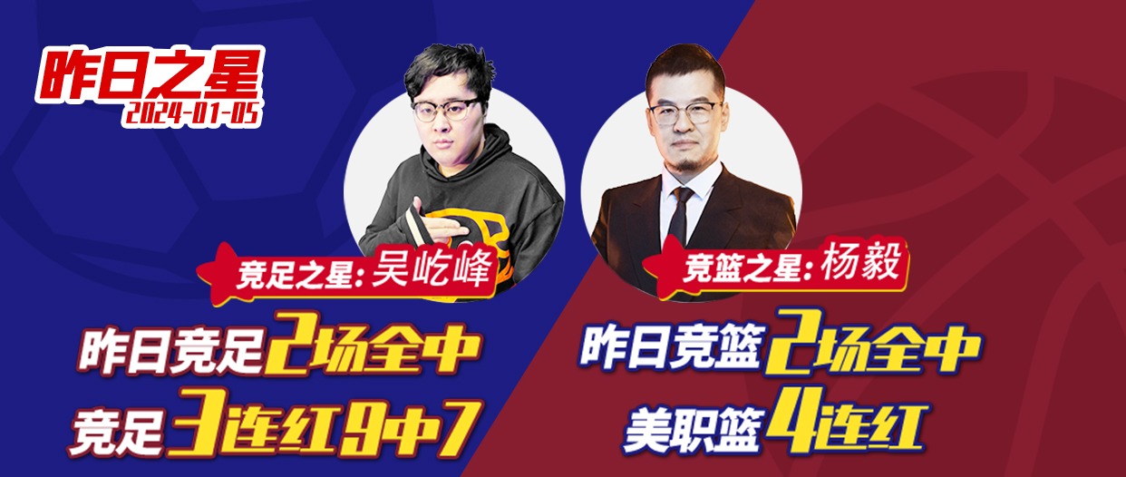 昨天是1月4日星期四,竞彩官方一共开售5场竞足赛事和4场竞篮赛事,多位专家均取得不错的成绩。