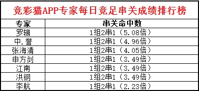 昨日多位专家命中串关,其中罗辑、中.誉、张海清、申方剑、江南、洪钢、李航命中1组串关。今日的串关方案,以上专家值得参考!
