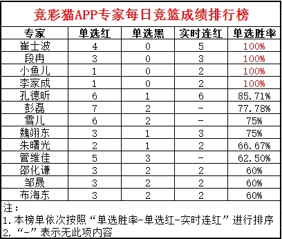 昨日竞篮之星授予专家崔士波。崔士波昨日4场比赛全部命中,弹无虚发。今日的竞篮推荐,崔士波的方案值得参考。