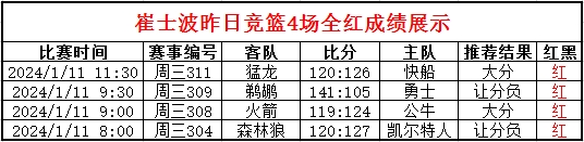 昨天是1月10日星期三,竞彩官方一共开售5场竞足赛事和11场竞篮赛事,竞彩猫多位专家均取得不错的成绩。