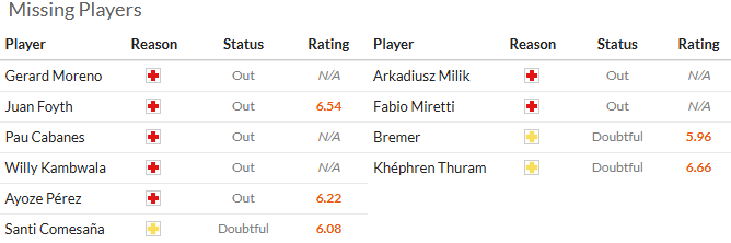 比利亚雷亚尔在本赛季的开局表现不错,其中西甲5胜1平1负,排名仅次于巴萨和皇马。但在欧冠中,他们上一场做客0比1输给托特纳姆热刺。本场卡巴纳斯、阿约泽-佩雷斯、赫拉德-莫雷诺、福伊特和坎布瓦拉等人都因伤缺阵。虽然近期球队在联赛中取得3连胜,但此役面对的毕竟是以稳著称的尤文图斯,主胜很难。