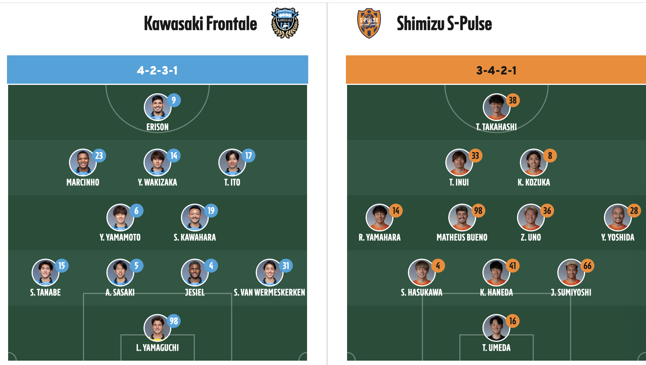 清水鼓动,主帅秋叶忠宏延续防守反击体系,尽管近三轮不胜,但整体防守显著提升。门将梅田透吾取代沖悠哉后。防守提升明显。今天首发来看,乾贵士,布鲁诺,吉田丰悉数首发。