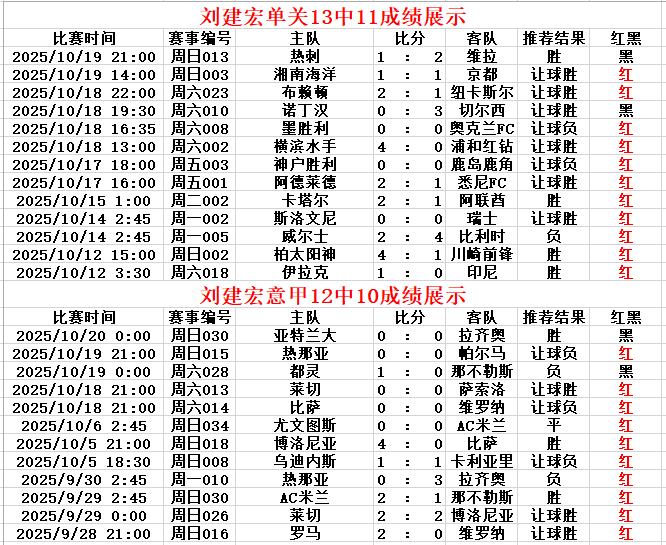 竞彩猫专家周榜(2025.10.13-2025.10.19)