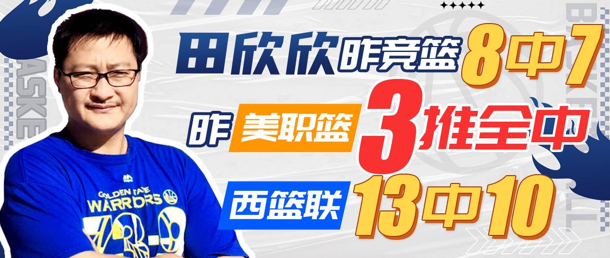 田欣欣 昨日竞篮8中7 昨美职篮3推全中 西篮联13中10