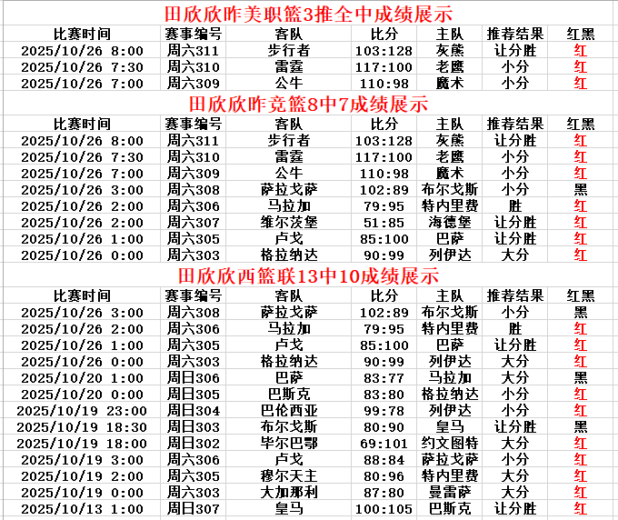 今日田欣欣继续带来多场比赛解读,点击→ 田欣欣 查看信心方案!