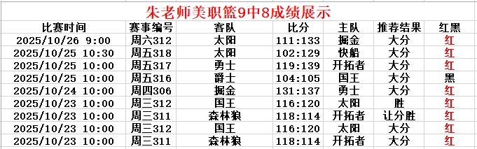 朱老师 美职篮9中8