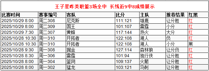 王子星昨美职篮3场全中 实时近9中8
