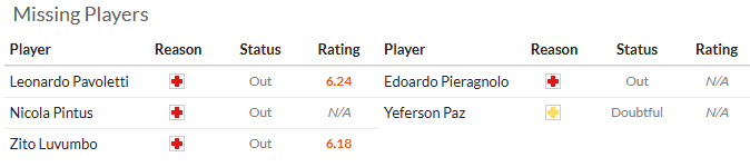 卡利亚里目前在积分榜中游偏下,上轮球队做客一度0比2落后于维罗纳,但最终2比2追平比分。名将帕沃雷蒂以及平努斯、卢文博因伤缺阵。萨索洛重返意甲后的表现可圈可点,本场阵容也很齐整,我看好客不败。