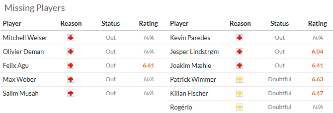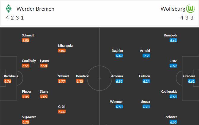 不莱梅上轮做客1比1打平美因茨,近4场2胜2平,主场两连胜,客场两连平。阿古、韦伯和穆萨因伤缺阵。沃尔夫斯堡上轮在主场2比3输给霍芬海姆,近7场1胜6负,排名持续下滑,主教练西莫尼斯压力很大,据说本场输球他就会下课。西莫尼斯在上赛季带领前进之鹰获得了荷兰杯的冠军,但执教狼堡后执行的丹麦路线并不成功,目前压力非常大。丹麦国脚林德斯特拉姆和梅勒等人因伤缺阵,还有多人出战成疑。搏主胜!