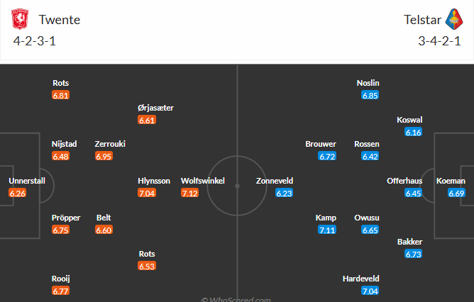 特温特上一场做客1比1打平格罗宁根,暂时排在积分榜的第9位。升班马特尔斯达上一场主场2比2打平SBV精英,开局2胜2平7负,暂时排在积分榜倒数第2位,保级压力很大。特温特本场有4人因伤缺阵,包括中场马蒂亚斯-科洛和后卫马科斯-布伦斯、魏德曼。特尔斯达方面,主力后卫恩万科沃因伤缺阵,前锋赫特利伤愈复出。这是一场遭遇战,两队近3次碰面都是在荷乙和荷兰杯,特温特保持全胜。本场我力挺打穿!