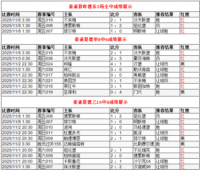 昨德系3场全中 德乙10中8 德甲8中6 德系专家在专业领域依旧权威!今日德系已发,跟上!