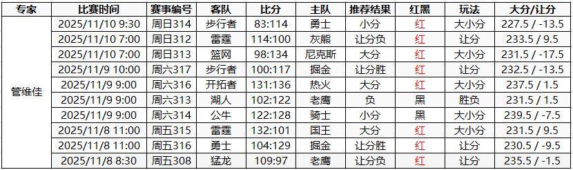 知名篮球解说 管维佳 昨日美职篮3推全中 长线5连红10中8