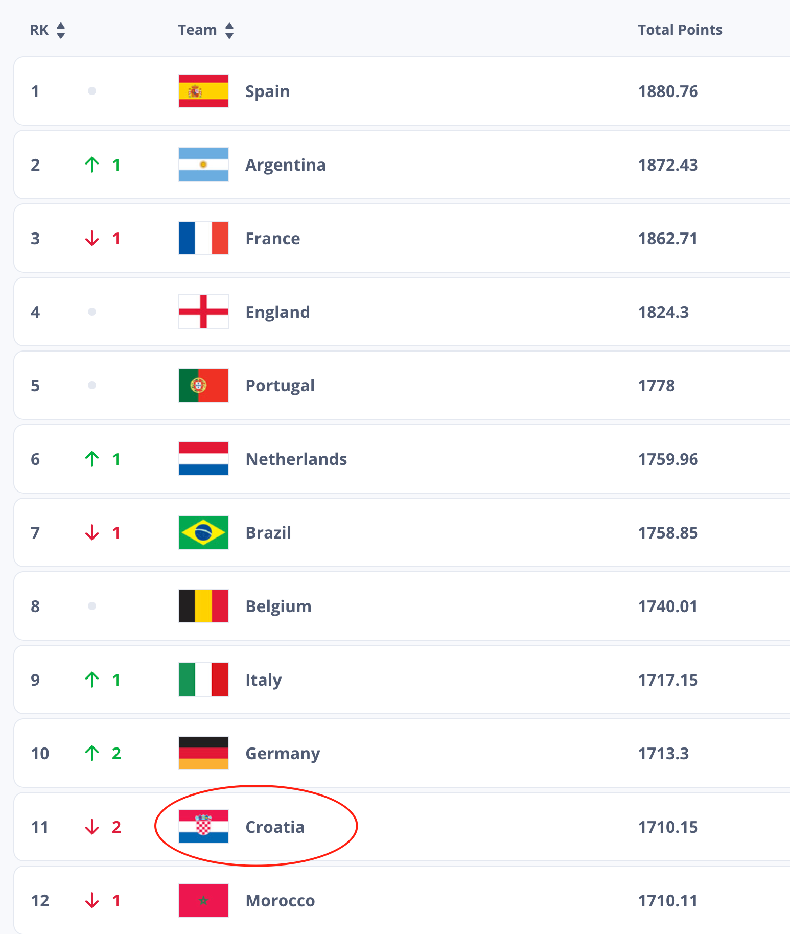 克罗地亚已经锁定了小组第一,这场比赛毫无战意吗?答案是否定的。看看国际足联的最新排名,克罗地亚目前1710.15分排在第11位,昨晚意大利已经输给了挪威,今晚如果同时进行的比赛,德国不能击败斯洛伐克的话,那克罗地亚作客击败黑山,就可以跻身国际足联排名第9位,这可以让克罗地亚成为明年世界杯的第一档种子,这当然是个利害攸关的事情。这意味着,今晚克罗地亚的阵容肯定会轮换,但也会保证首发的质量,比如莫德里奇,将几乎肯定会首发。