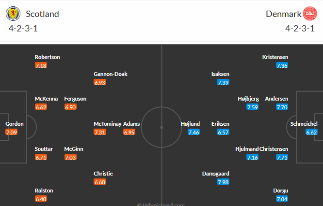 苏格兰上一场做客2比3输给已经出局的希腊,在一度0比3落后的情况下,他们打进2球并险些追平比分,还是展现了球队的韧劲。此番回到主场,苏格兰击败丹麦即可出线,他们上一次参加世界杯还是1998年,但如果打平,就得去参加大浪淘沙的附加赛。本场是队长罗伯逊在国家队的第90次出场,他坦言:“这是莫大的荣誉,在我出道时,我想不到自己能代表国家队出战洲际大赛并随利物浦拿到欧冠冠军。现在我们有机会直接进入世界杯,现在大家必须保持专注,全力以赴。”在意甲那不勒斯踢球的中场吉尔莫本场因伤缺阵。