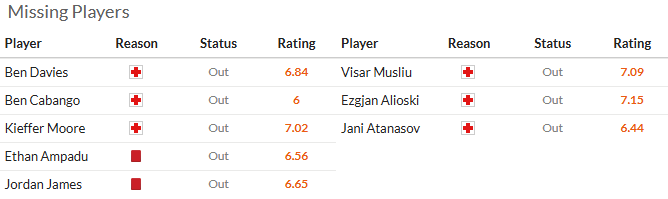 威尔士上一场做客1比0小胜弱旅列支敦士登,打进制胜球的丹尼尔-詹姆斯本场累计黄牌停赛,同时停赛的还有在利兹联效力的安帕杜,这对球队的中前场影响不小,本来他们就缺少了基夫-摩尔、阿隆-拉姆塞、本-戴维斯和卡邦戈。北马其顿和威尔士同分,但净胜球领先,打平就能确保小组第二。
