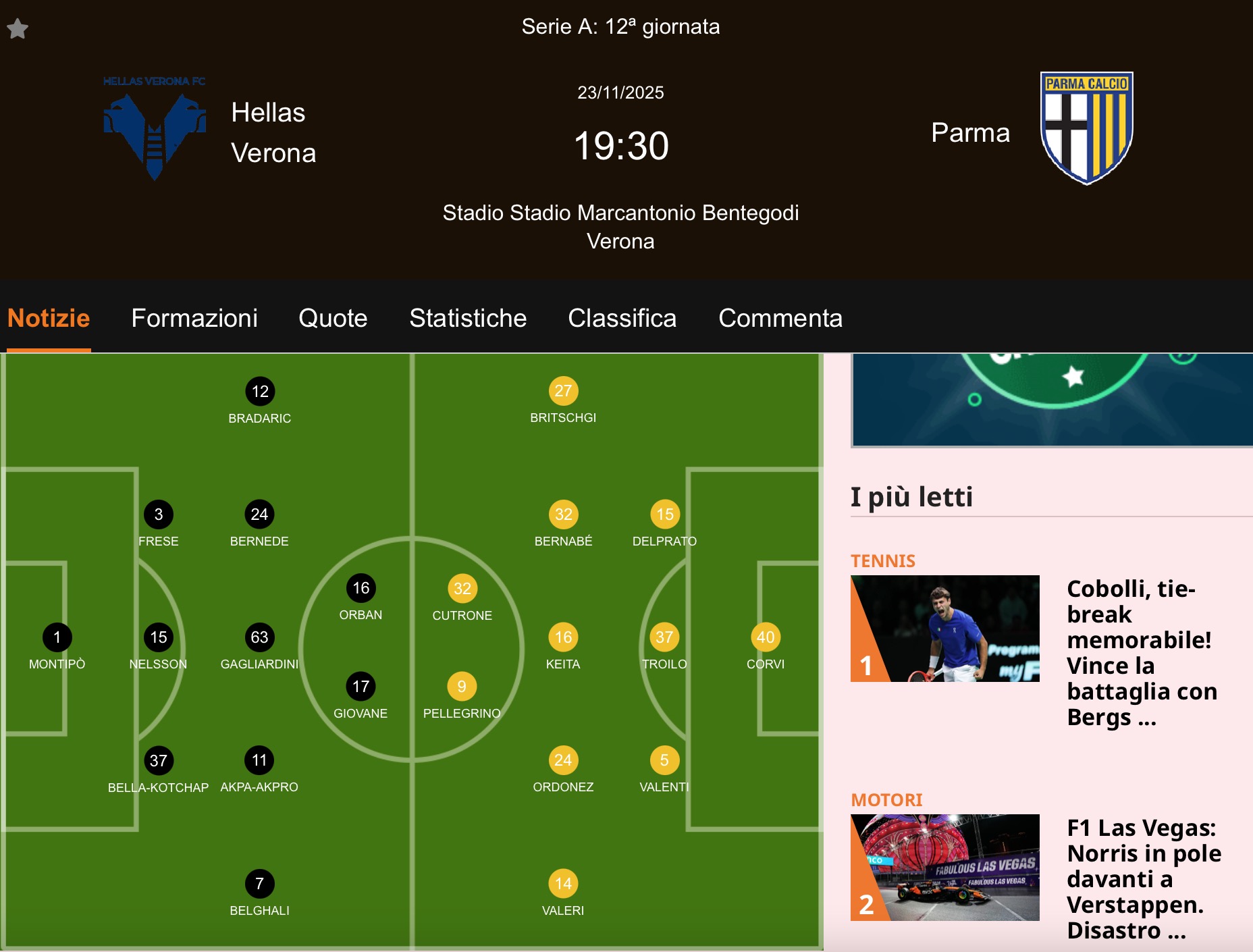 维罗纳上轮客场0-0与莱切战平,本赛季开局6平5负还没有胜绩,目前在积分榜处于垫底位置,保级还是球队的主要目标,本场阵容上后卫奥耶戈凯、主力中场塞尔达、替补苏斯洛夫、耶尤·圣地亚哥都因伤缺席。