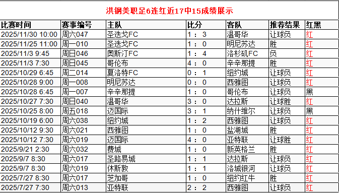 美职足6连红近17中15!美职足黄金单场,资深大咖