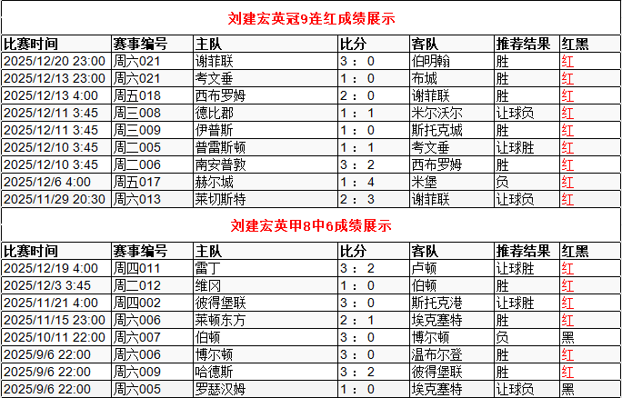 英冠9连红 英甲8中6 点击→