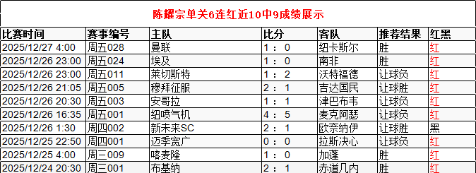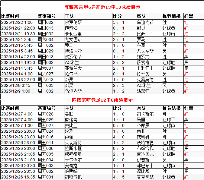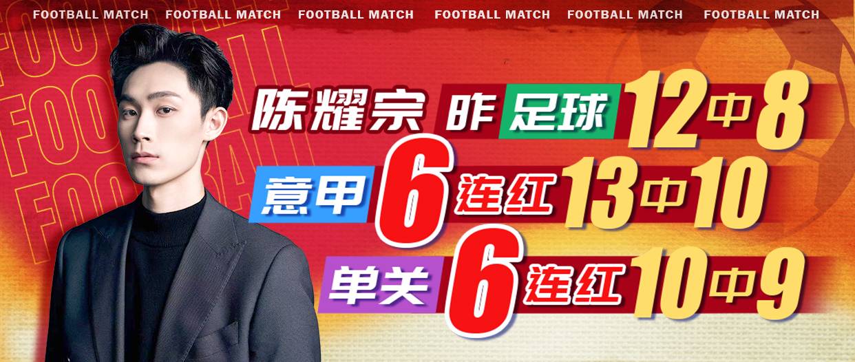 陈耀宗昨足球12中8 意甲6连红13中10 单关6连红10中9