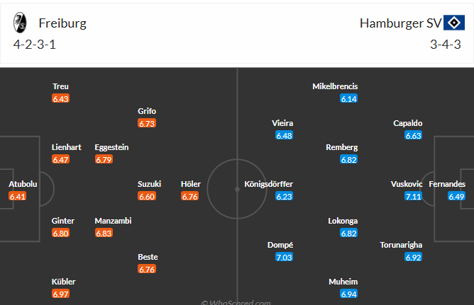 弗赖堡本赛季多线作战,整体表现尚可,堂安律的离开对球队的进攻有些影响,高价加盟的日本前锋铃木唯人目前为止的表现还谈不上优秀。本场球队阵容齐整。汉堡缺少奥马里和格拉策尔,客场战力孱弱。主胜!