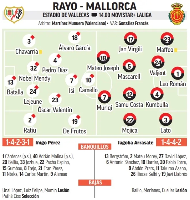 巴列卡诺最近一场联赛主场1比1打平同城对手赫塔费,最近一场比赛则是西班牙国王杯,他们做客3比1击败淘汰西乙球队格拉纳达。人员方面,西斯还在非洲杯征战,乌奈-洛佩斯、穆明、路易斯-费利佩因伤缺阵。马洛卡方面,最近一场联赛在主场1比2不敌赫罗纳,状态不佳。拉伊略、莫拉内斯、库利亚尔都因伤缺阵。目前巴列卡诺领先降级区2分,马洛卡领先降级区1分,这场比赛至关重要。综合考虑,我力挺“闪电”胜!