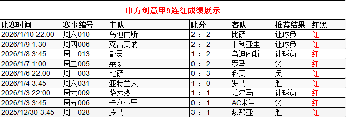 意甲9连红 点击→