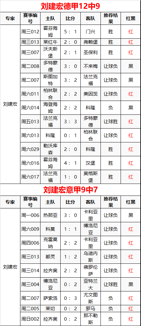 郝老师昨竞足7中5 单关5连红 意甲11中8 德甲14中12