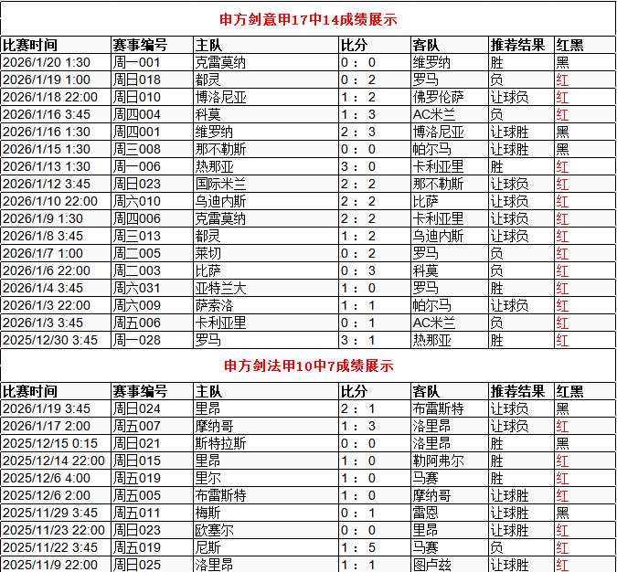 意甲近17中14 法甲近10中7 点击→
