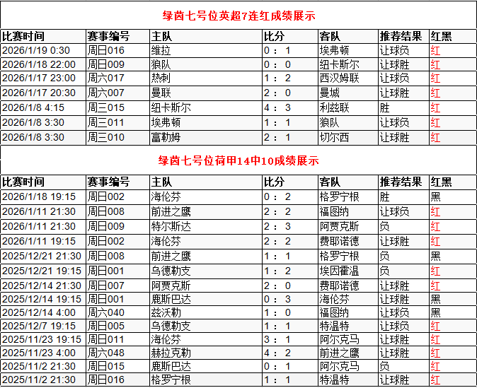 英超7连红 荷甲近14中10 点击→