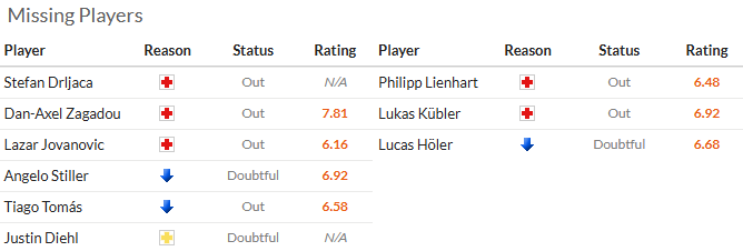 斯图加特周中欧联杯在主场3比2险胜瑞士球队伯尔尼年轻人,他们开场取得2比0的梦幻开局,却一度被对手追成2比2平,好在最后时刻完成绝杀,但因为积分不够,还是只能参加晋级附加赛。后卫扎加杜等人继续因伤缺阵。弗赖堡方面,周中欧联杯做客苦战90分钟最后时刻被里尔1比0绝杀。人员方面,莱因哈特和库贝尔等人因伤缺阵,霍勒伤愈复出。斯图加特的阵容厚度还是比弗莱堡好一些。综合考虑,本场我看好主胜。