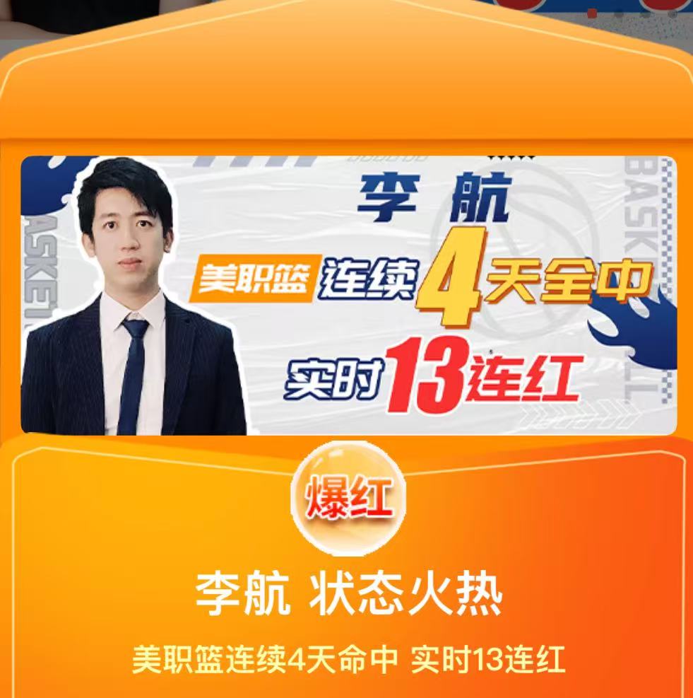 近期NBA状态火热,昨天两场再次全红,长线达成13连红,运气不错,继续加油。感谢大家的支持,好运!