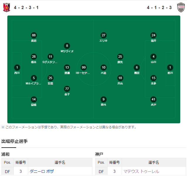 这场比较有意思,两队的3号外援后卫都遭遇停赛,浦和是达尼洛博萨,之前出场31次打进1球,神户是图勒尔,他出场27次打进2球。神户虽然是一周双赛,但周中在做出大轮换的情况下还是主场1比0绝杀了澳超球队墨尔本城。神户目前落后领头羊鹿岛鹿角4分,依旧有机会冲击3连冠,浦和状态平平且战意也一般。So…