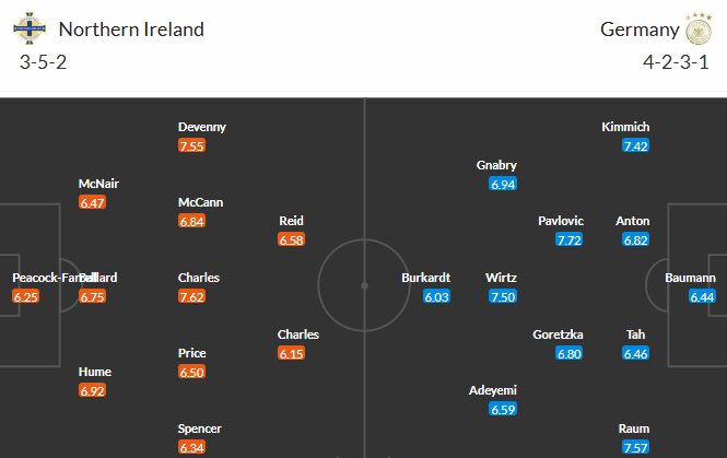 北爱尔兰上轮在主场2比0力克斯洛伐克,目前他们和德国、斯洛伐克同积6分。但球队的天赋有限,在利物浦效力的康纳-布拉德利又遭遇停赛,情况不太乐观。布朗和查尔斯因伤缺阵。德国方面,上轮4比0完胜卢森堡,基米希等人取得进球,吕迪格继续因伤缺阵。结合指数的态度,我看好德国在客场打穿指数。