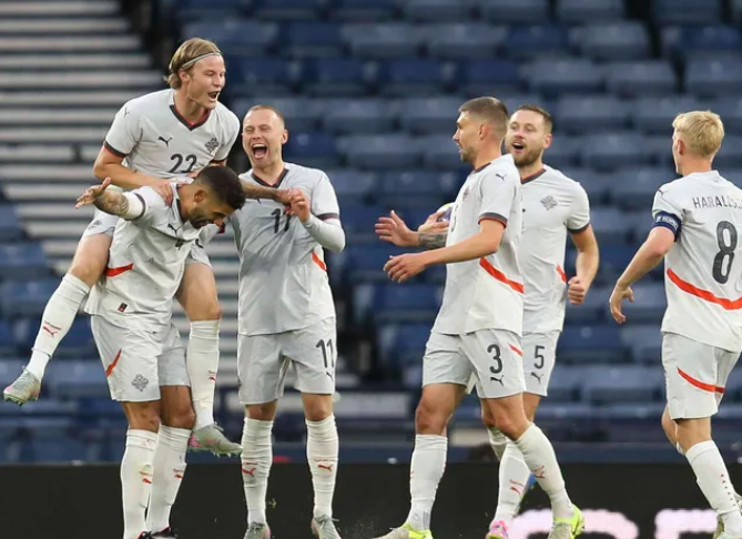 冰岛(442) Olafsson; Palsson, Ingason, Gretarsson, Ellertsson; Gudmundsson, Johannesson, Haraldsson; Magnusson, D Gudjohnsen, Thorsteinsson