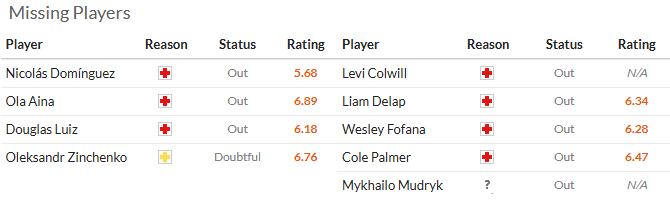 诺丁汉森林在新帅波斯特科格鲁上任后各项赛事7场不胜,其中只有两场打平,5场输球。本场中场道格拉斯-路易斯、埃纳和多明格斯都因伤缺阵,从阿森纳租借而来的乌克兰国脚津琴科出战成疑。切尔西在连续3场比赛红牌后上轮2比1绝杀利物浦,总算止住颓势。球队目前的伤病情况主要集中在后场和前场,科尔维尔、韦斯利-弗法纳、帕尔默和德拉普无法出战。我认为森林具备一定的拉力,但他们的状态实在不可信。