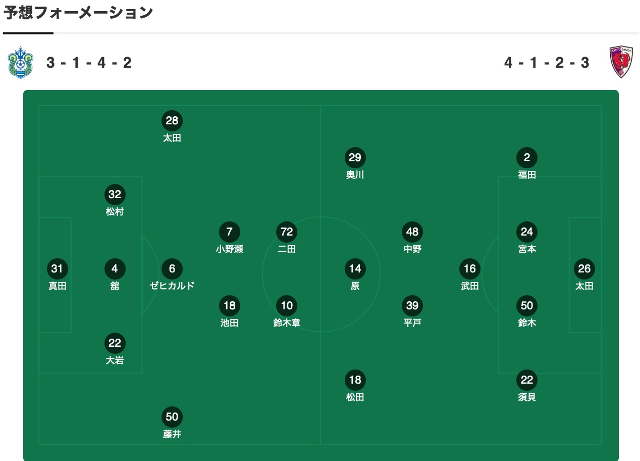 京都不死鸟上轮主场1-1与川崎前锋战平,最近的5轮只取得了一场胜利在积分榜上与榜首的鹿岛鹿角差距达到了5分,不过本轮鹿岛鹿角与神户胜利船战平,球队也是得到了缩小积分差距的机会,阵容上中场米本拓司继续因伤缺席,主力中场福岡慎平、主力前锋埃利亚斯、替补平賀大空出战有一定疑问。