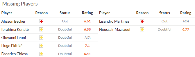 利物浦上轮1比2被切尔西绝杀后暂时失去了榜首的位置,各项赛事遭遇3连败,阿森纳取而代之。在刚刚过去的国际比赛日,加克波、伊萨克、索博斯洛伊等国脚前往国家队效力并消耗很大。主力门将阿利松继续因伤缺阵,科纳特、小基耶萨和埃基蒂克都存在不同程度的伤病。主教练斯洛特在赛前表示:““赫拉芬贝赫完全健康。科纳特已经归队,预计今日参与训练。阿利松没有训练,无法出战。很难给出他的回归日期,因为在最终康复阶段,可能会出现积极或消极的变化。但可以确定,他周末和下周都不会出场。”