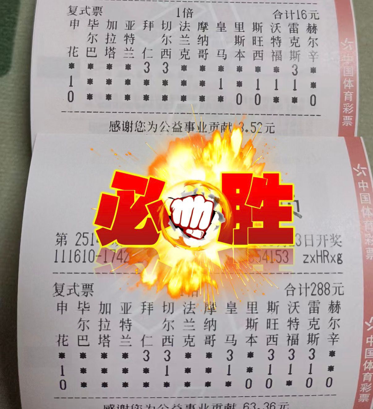 任九做好的单子不要四平八稳,那样一般情况下是不会中奖的,就算是偶尔中了也必然会是火锅,从投资的角度来说,任九做单思路必须是奔着大奖走,必须有细水长流的长远计划,个人目前常规玩法是3胆4双2全包288元,任九是奖池型,适宜将以小博大发挥到极致,而我玩任九有个宗旨就是热门场次尽量不选,擅用胆材,正所谓:恶向胆边生,胆从险中求!