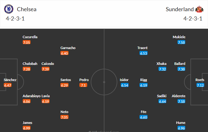 切尔西近7场比赛有6场拿到红卡,其中自己拿到5张,最近一张是周中欧冠主场5比1击败阿贾克斯对手拿到的。边后卫古斯托停赛,帕尔默、科尔维尔、德拉普、巴迪亚希勒等人继续因伤缺阵。桑德兰是升班马,表现中规中矩,穆德尔等老伤号继续因伤缺阵。桑德兰的球风比较保守,尤其是做客,本场我看好打出让平。