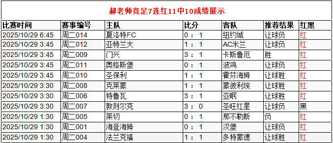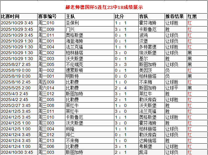 郝老师竞足7连红11中10 德国杯5连红23中18