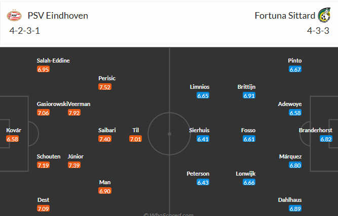 埃因霍温上轮做客3比2力克费耶诺德,10轮过后,两队同样是8胜1平1负的战绩,并列积分榜首。与费耶诺德一战,塞巴利梅开二度,成为球队的最大功臣。锋线上的普莱亚和小范博梅尔继续因伤缺阵。福图纳锡塔德目前4胜1平5负,球队周中还踢了一场荷兰杯,做客1比0小胜低级别球队晋级。目前福图纳锡塔德有5人因伤缺阵,包括辛克格拉文、哈利霍维奇等前五大联赛球员。结合指数的态度,我更看好埃因霍温打穿!