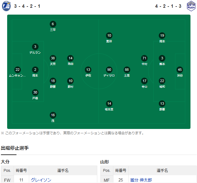 大分三神上轮做客1比0击败熊本深红,在还剩4轮联赛的情况下领先降级区9分,本场只要赢球就能提前保级,甚至拿到1分也有不小的机会保级。山形山神上轮主场2比2打平大宫松鼠,在联赛还剩4轮的情况下已经提前保级。两队各有一人停赛,大分是外援前锋,山形是中场国分伸太郎。综合考虑,本场我看好让胜。