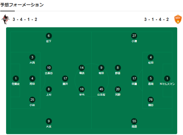 【日乙临场火线】首发已出!甲府+富山+熊本!